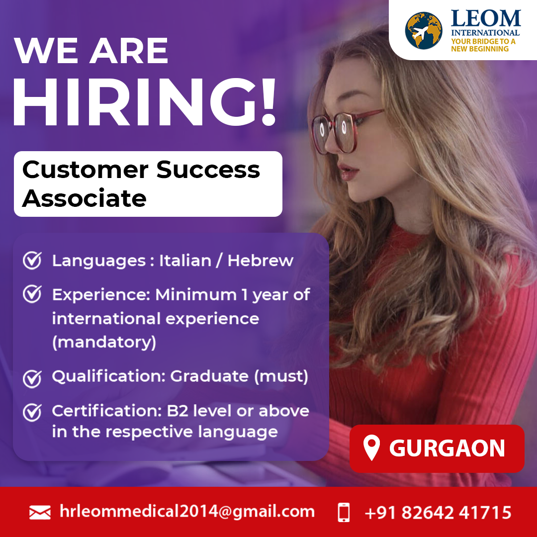 Hiring Now: Customer Success Associate (Italian / Hebrew Process) Join BIRD in Gurgaon and build your international career! If you have B2+ proficiency in Italian or Hebrew, excellent English communication, and at least 1 year of international experience, we want you on our team! ✅ Graduate (must) ✅ Work From Office – Gurgaon ✅ Both-side cab facility ✅ Attractive salary based on language 📧 Apply Now: hrleommedical2014@gmail.com 📞 Contact: +91 82642 41715