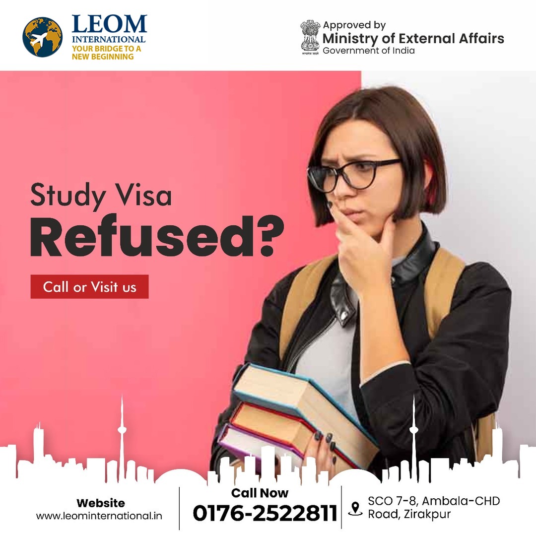 Study Visa Refused? Don’t Worry — LEOM International Can Help You Succeed! Has your study visa been refused? Don’t lose hope! At LEOM International, we specialize in visa refusal cases and help students reapply successfully for their dream countries — Canada, UK, USA, Australia, and Europe. Our experts carefully analyze your refusal reason, correct your documentation, and prepare a strong reapplication file to improve your chances of approval. ✅ Free Assessment of Refusal File ✅ Expert Visa Counseling ✅ SOP & Documentation Support ✅ High Re-approval Success Rate 📍 Visit us: SCO 7-8, Ambala–CHD Road, Zirakpur 📞 Call Now: 0176-2522811 🌐 Website: www.leominternational.in